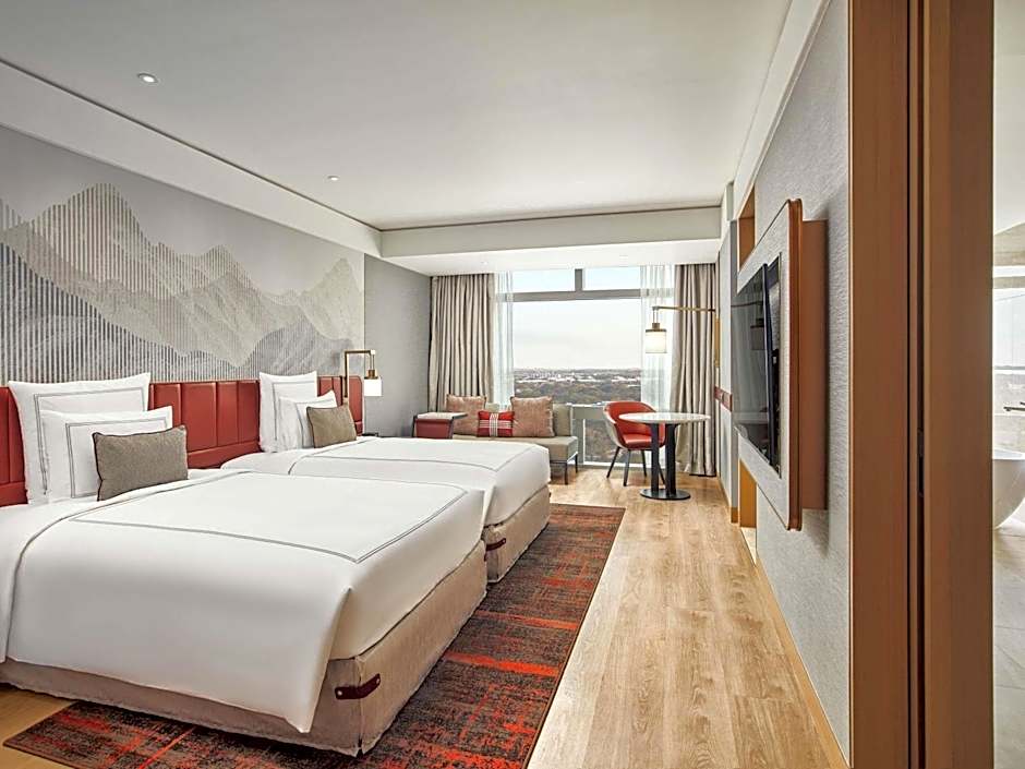 Deluxe-rom tilbyr et koselig område med stilig design og alle nødvendige fasiliteter for et avslappende opphold. Executive-rom gir litt mer plass og luksus, perfekt for dem som ønsker å unne seg en mer eksklusiv opplevelse. For gjester som søker ultimat komfort og sofistikerthet, tilbyr suiter med ett soverom en romslig oppholdsdel og et separat soverom for ekstra privatliv.